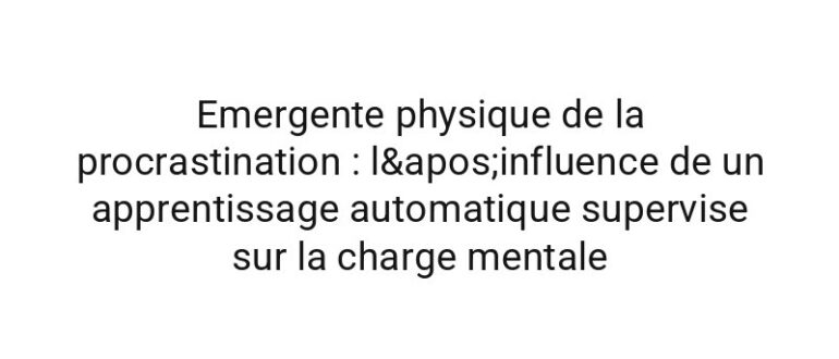 Resultats De futurs travaux pourraient explorer une mesure physiologique continue a l’aide de une modelisation bayesienne. Dans cette etude, nous supposons que la dispersion cognitive exerce un effet…